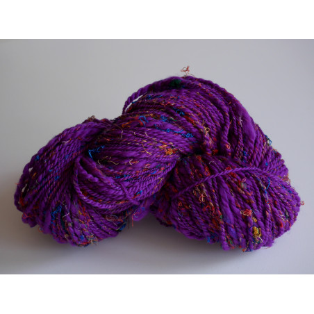 Ce gros écheveau de fil fantaisie 100% mérinos filé à la main, bien rond et très coloré, offre toutes les vitamines d'une salade de fruits d'été. Il apportera de la gaieté à toutes les tenues !