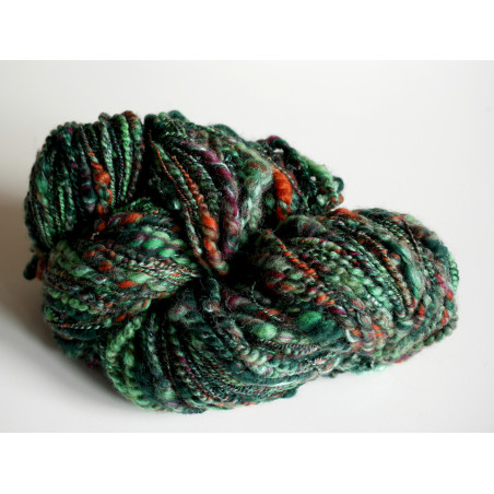 Ce gros écheveau de fil fantaisie 100% mérinos filé à la main, bien rond et très coloré, offre toutes les vitamines d'une salade de fruits d'été. Il apportera de la gaieté à toutes les tenues !